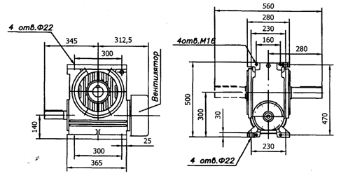 Габаритные и присоединительные размеры редуктора Ч 160